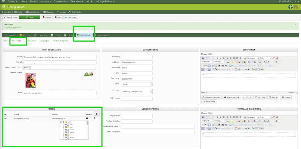 Have I published myself as a vendor in the front end? Please see 2nd screen shot!