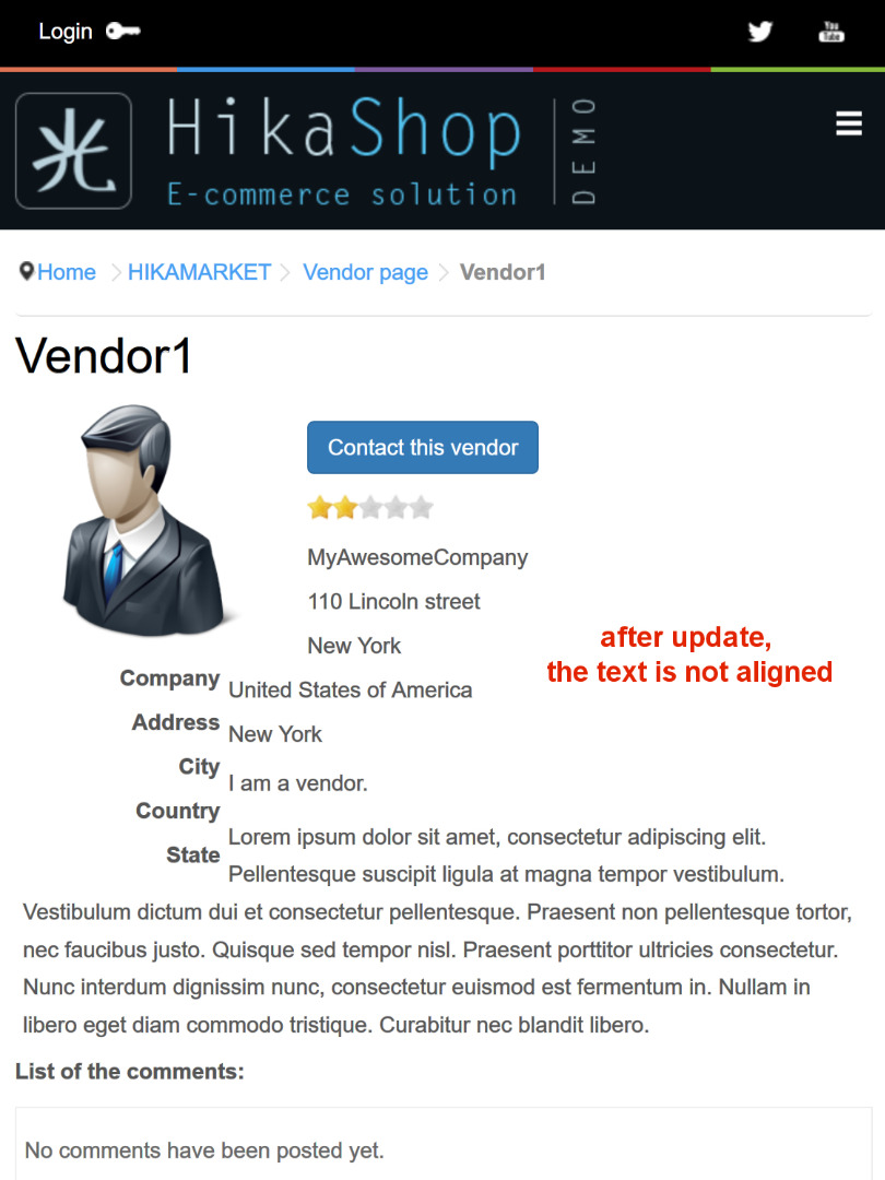 after update 3.0.1 , in the vendor page the text is not aligned (tablet)