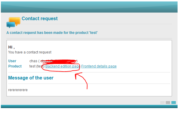 Indeed now Hikashop add the backend edition page in the "product contact email" ; that part is directly processed in the contact preload and HikaMarket do not have a direct/simple access to give another URL.