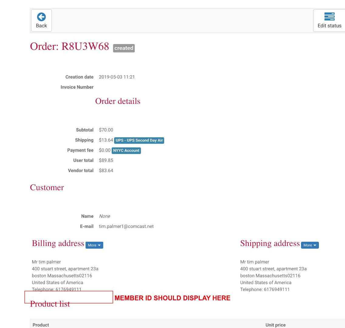 So for HikaMarket it will be the same process ; creating a view override for the "ordermarket / show_block_address" to display the field value after the display of the billing address.