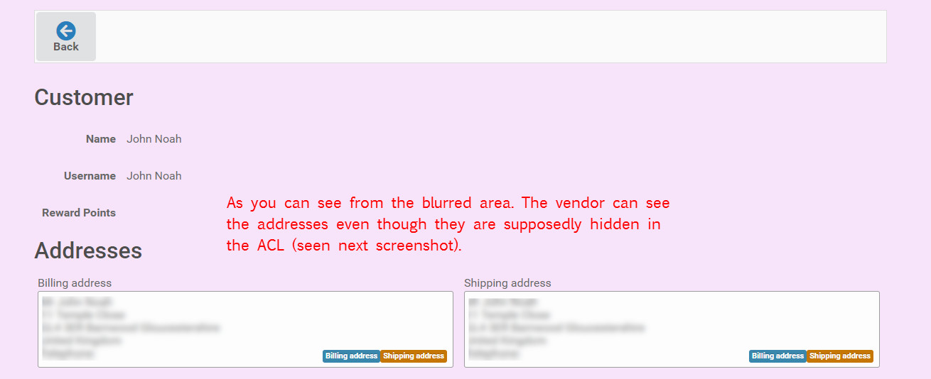 Cannot remove shipping/billing address from Vendor's customer view.