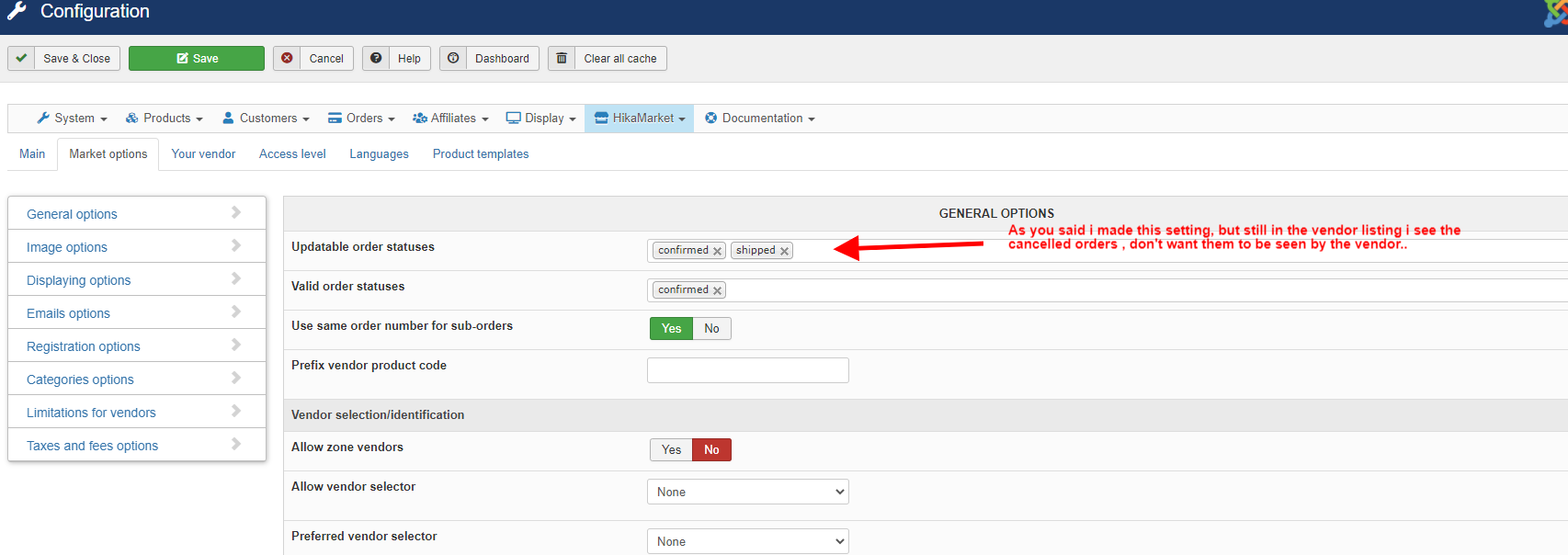 The setting is for filtering the order status the vendor can use when he wants to update an order.