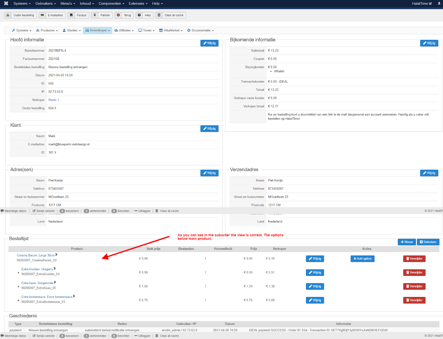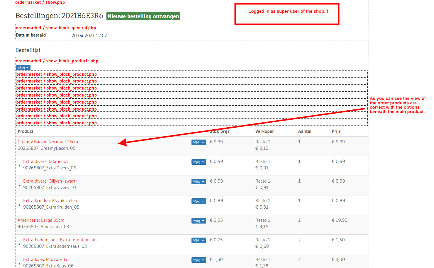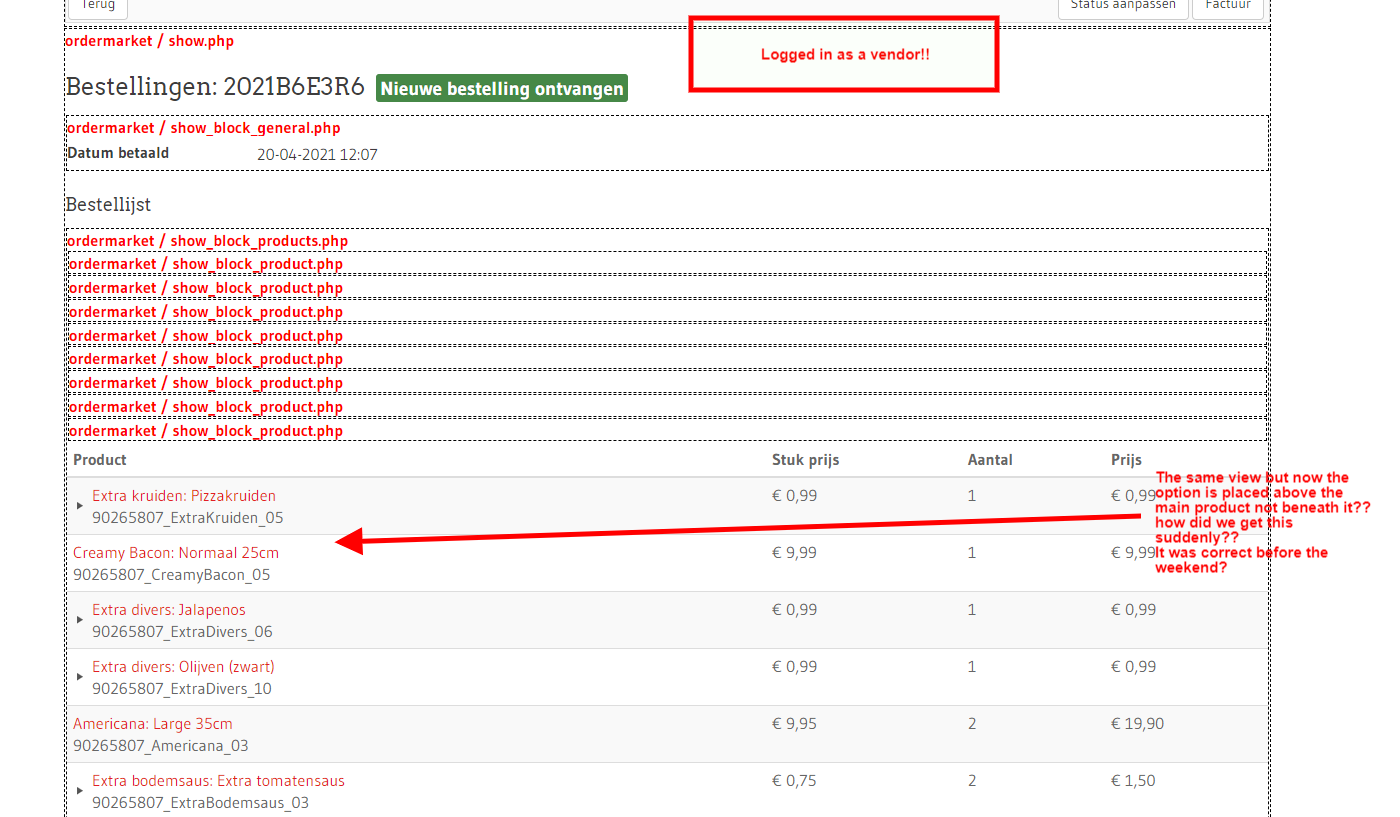 I did not tell you that a customer can see the content that your super-admin would ; I told you that the super-admin opened the content of the order related to the customer ; while the vendor display something different from the database.
