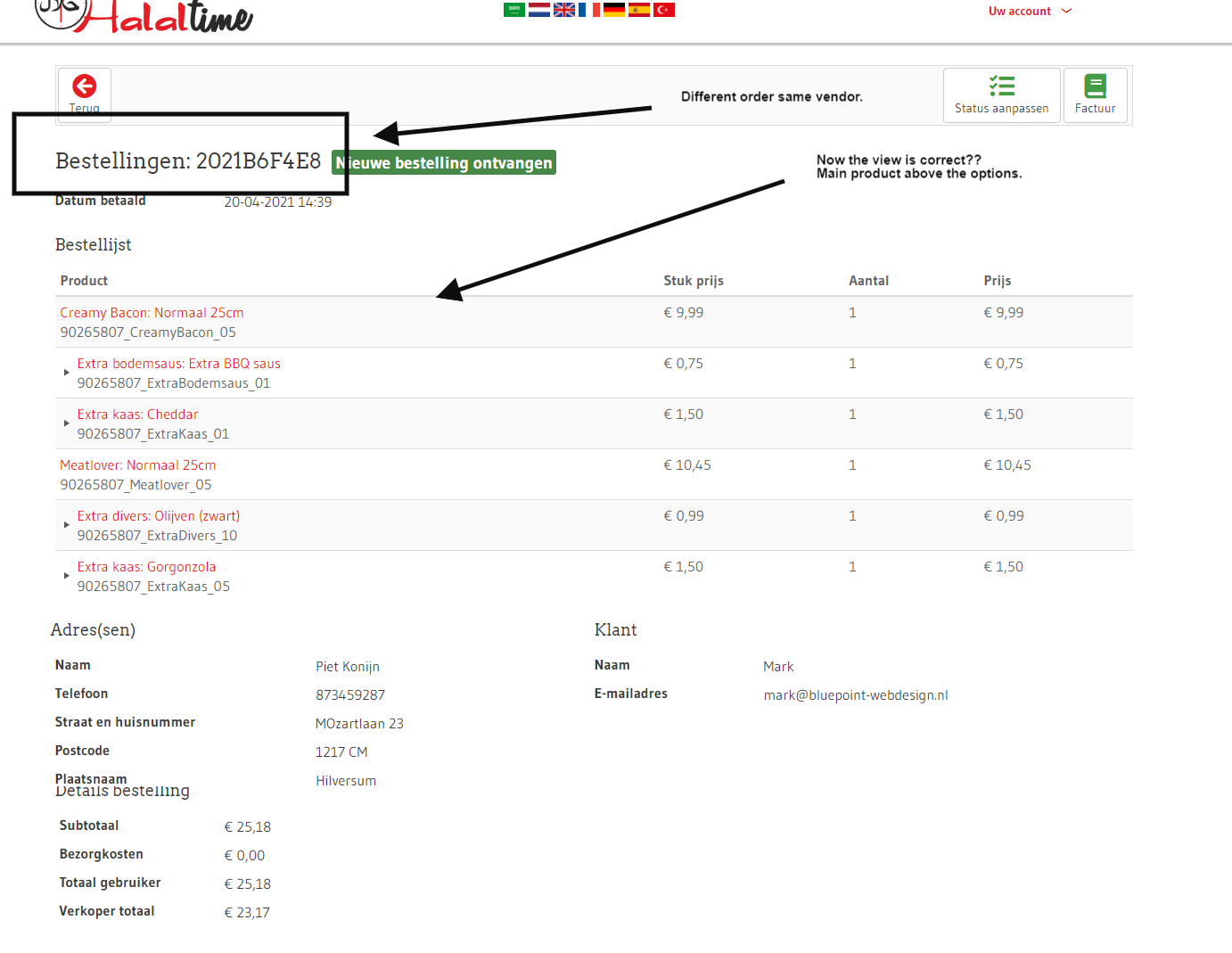 In the first image you're opening the main order ; the one that the customer can see and which display all products (for all vendors).