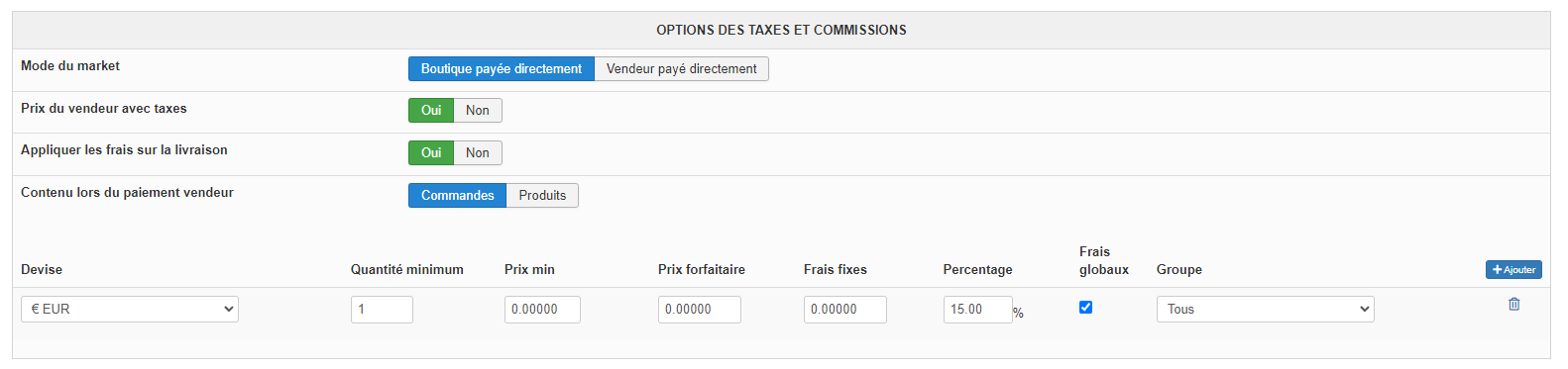Testé avec Backend->hikamarket->Options du market->Options des taxes et commissions->Mode du market = Boutique payée directement (idem avec « vendeur payé directement » Avec les 2 j’obtiens le même résultat si 2 vendeurs sont dans la commande)