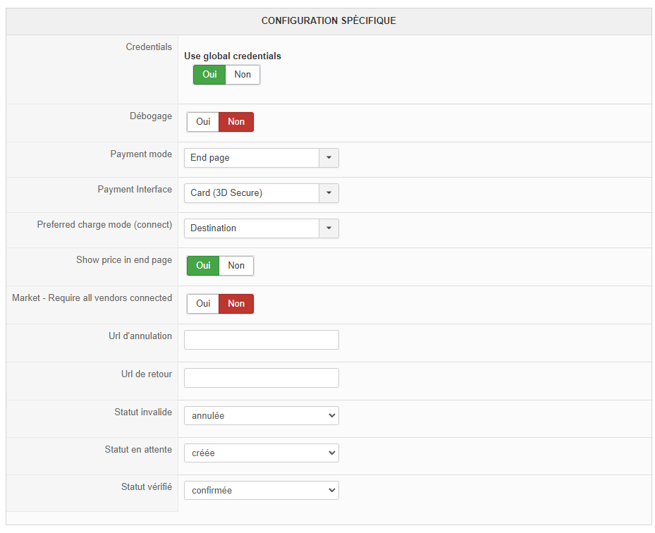 Le compte/vendeur principal est correctement configuré avec le plugin Stripe/connect, les vendeurs le sont également via leur page respective depuis le front-end.