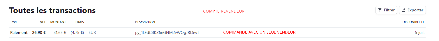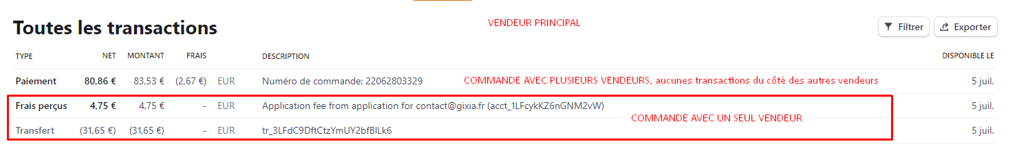 Quand je passe une commande avec un seul produit donc un seul vendeur, tout fonctionne parfaitement. Le vendeur reçoit son paiement et le vendeur principal reçoit sa commission.