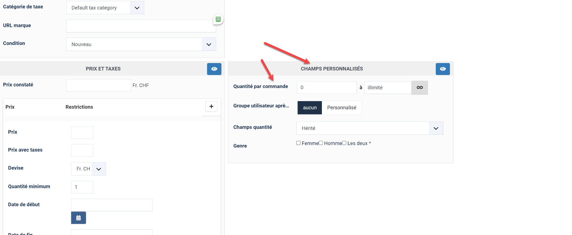 However, on the first site, I don't see this field. Instead, I have a quantity field. I don't understand why. I had to change something but I can't find what.