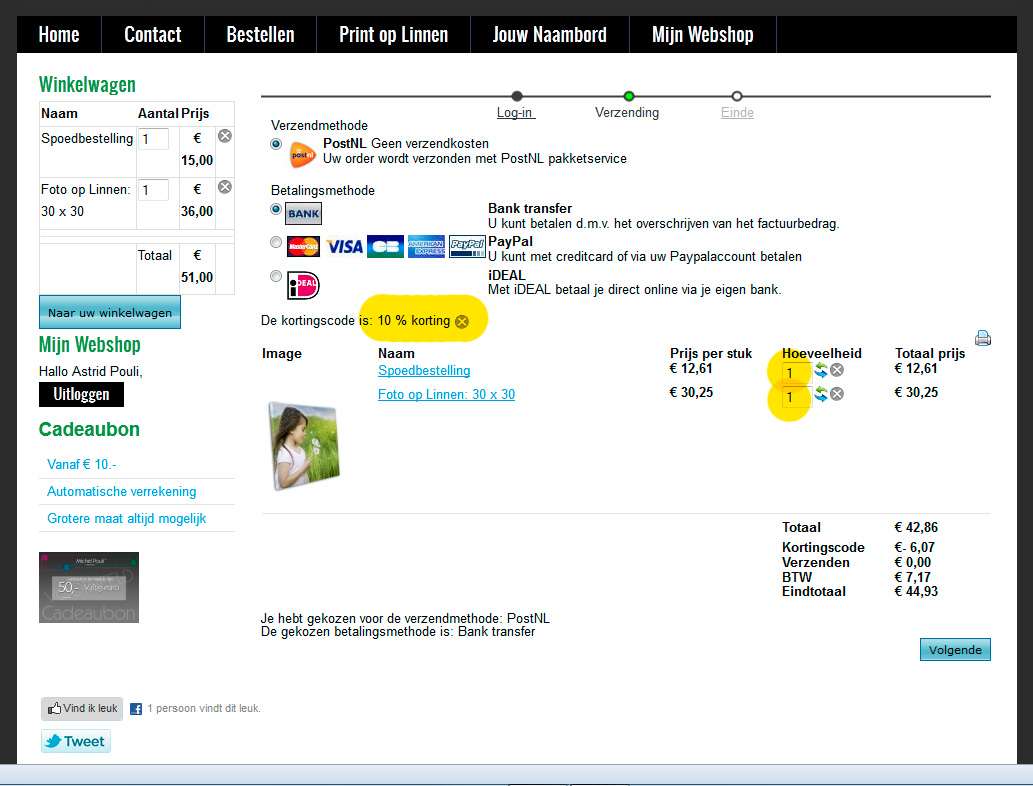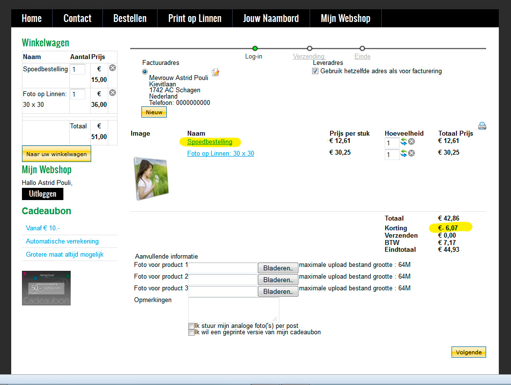 One thing I don't understand with your screenshots is that the total price before discount is 51€.
