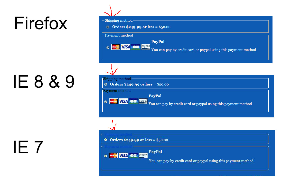 I found the simplest solution was to add a specific style to my template for 'legend' tags. The Hikashop html uses 'Legend' to identify the fieldset titles during checkout, and it seems IE wants to render Legends in its own unique way unless prompted otherwise. So I prompted it otherwise by adding the following to my CSS: