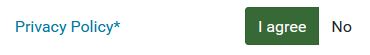 I understand now that in the Hikashop Registration Form the consent is given by by pushing buttons, rather than checking boxes.