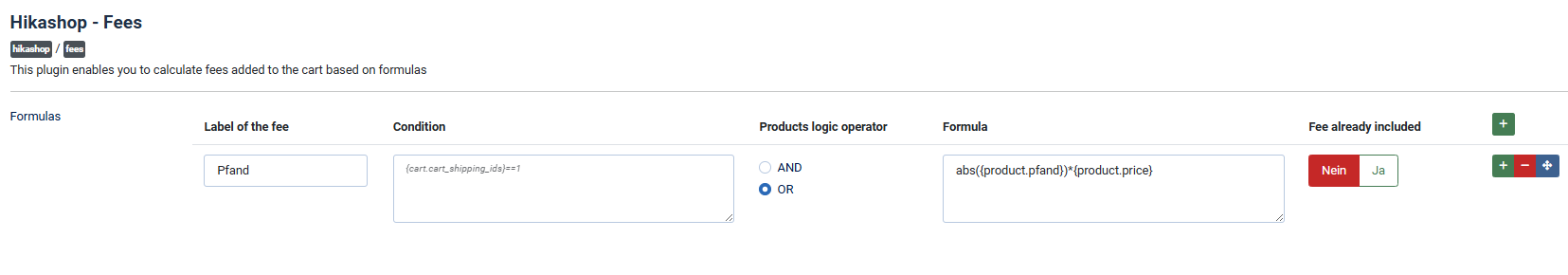 Next: The formula works ... more or less as expected. Currently the value of the custom field is multiplied by the product price. I replaced "product.price" with "order.price" for testing reasons. I think I have to multiply the custom field value with the product quantitiy. But I could not find the correct variable. I tried "product.quantity" but this doesn't work.