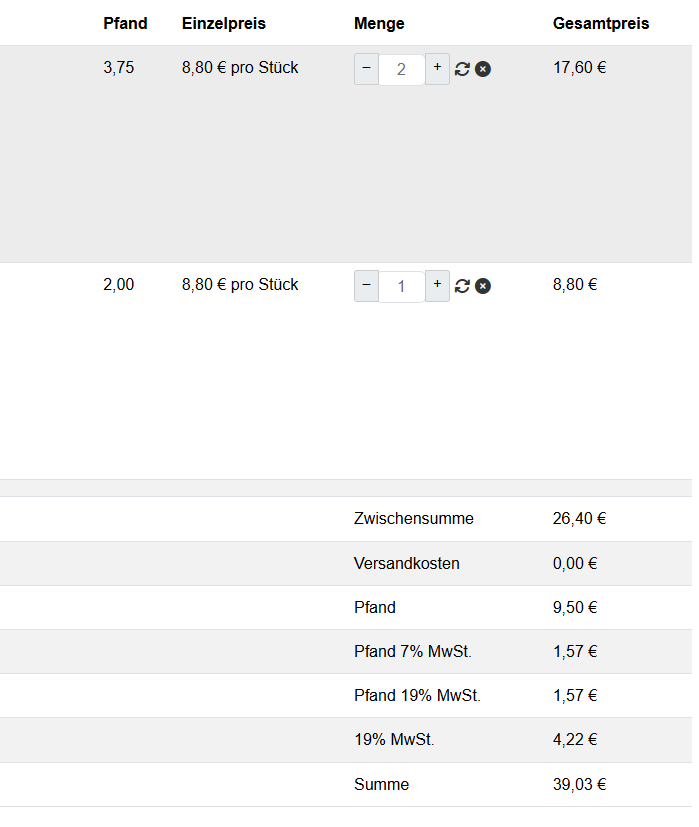 nicolas wrote: Now, the new error says that you apparently have something which is not a number in the pfand custom field in one of the products.