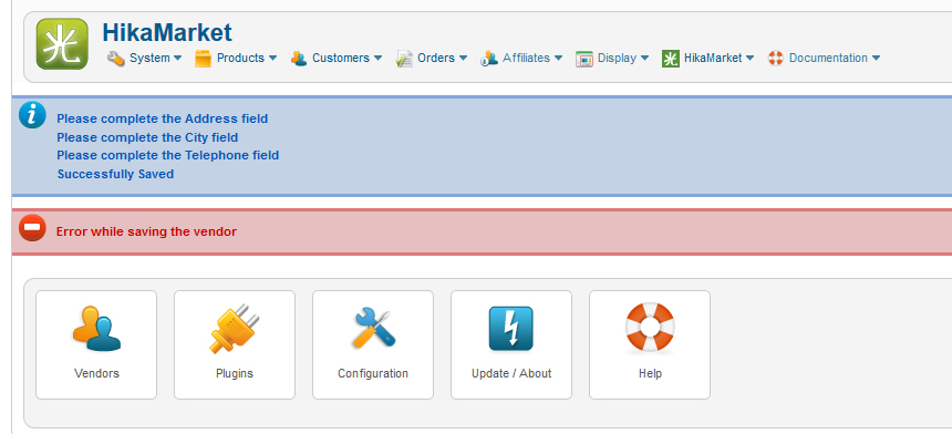 If you just touch to the HikaMarket configuration, well, it is saved so the vendor not saved is not tragic.