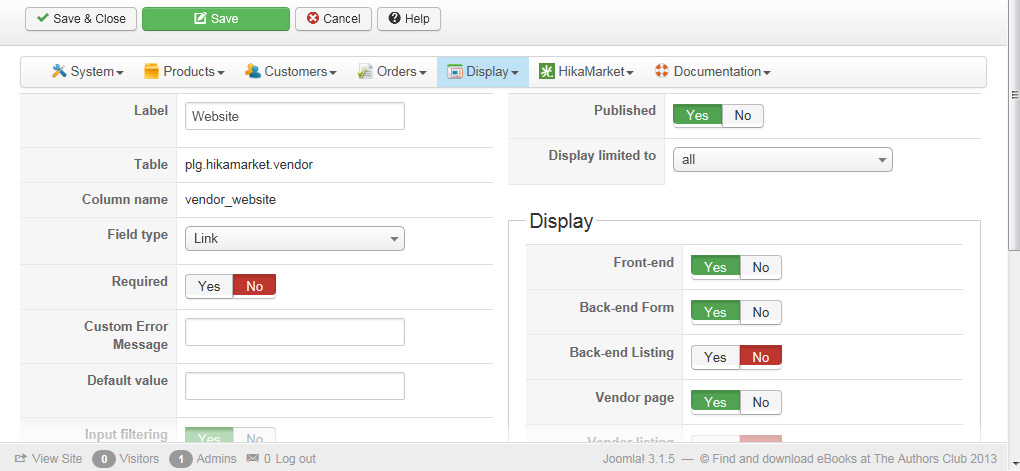 echo $this->fieldsClass->show($oneExtraField, $this->vendor->$fieldName);