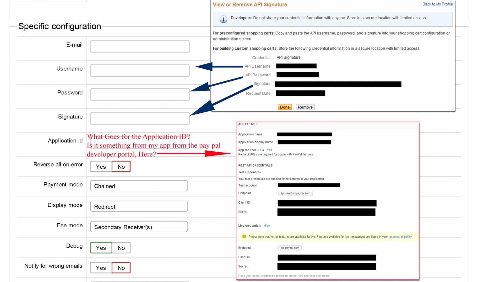 We’ve set up a paypal account, verified it and Requested API credentials to create our own API username and password. With that, we received a API Username, API Password & Signature. These are all details required to set up the adaptive payment plugin, EXCEPT that doesn’t give us an Application ID. Looking at your documentation for the paypaladaptive plugin, it does not mention an Application ID. Regardless I assume we have to set up an app. We went to the paypal developer site and set up an app. Once we set it up, we were given credentials (client id and a secret) for sandboxing and testing, as well as live credentials. We are still confused, however, as to what we need to put for the Application ID.