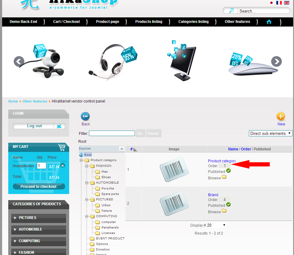 So, you are right, the ordering input in not added in HikaMarket but I will add it as soon as possible.