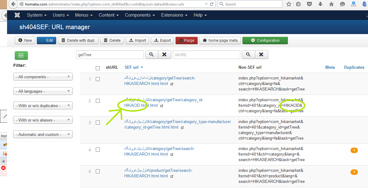 return str_replace('&', '&', $ret);The idea is to detect when a bracket is removed from the URL and then, to not use a SEF url.