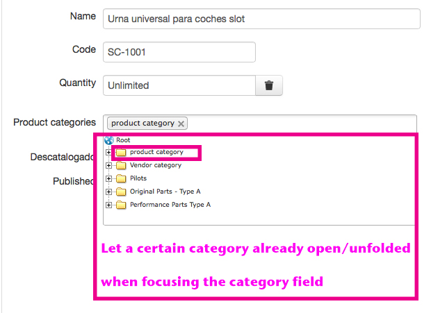 );The categories of the "product category" will be automatically loaded and the "product category" will be in open state.