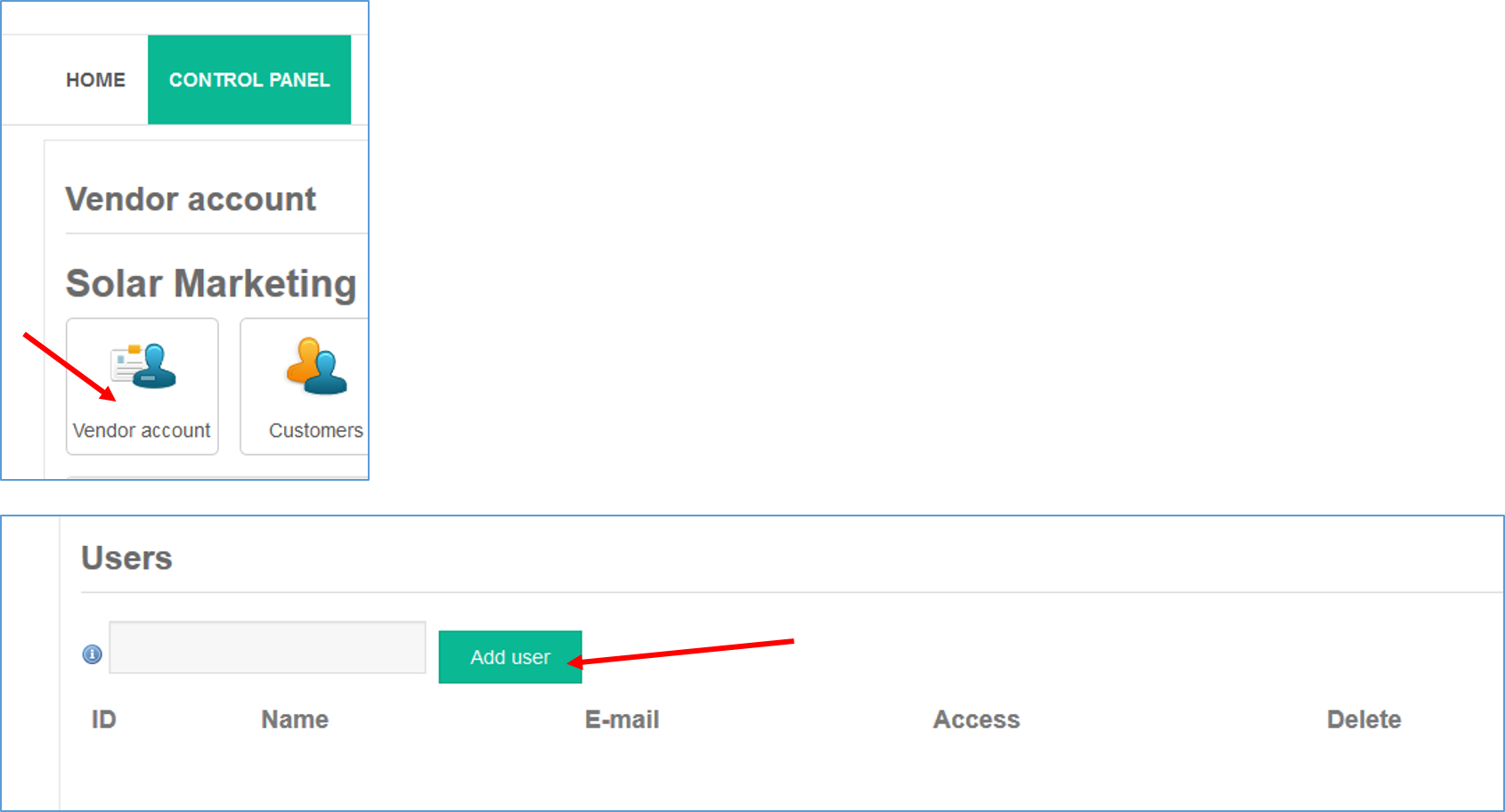 To add a user, the "vendor manager" must know the email address.