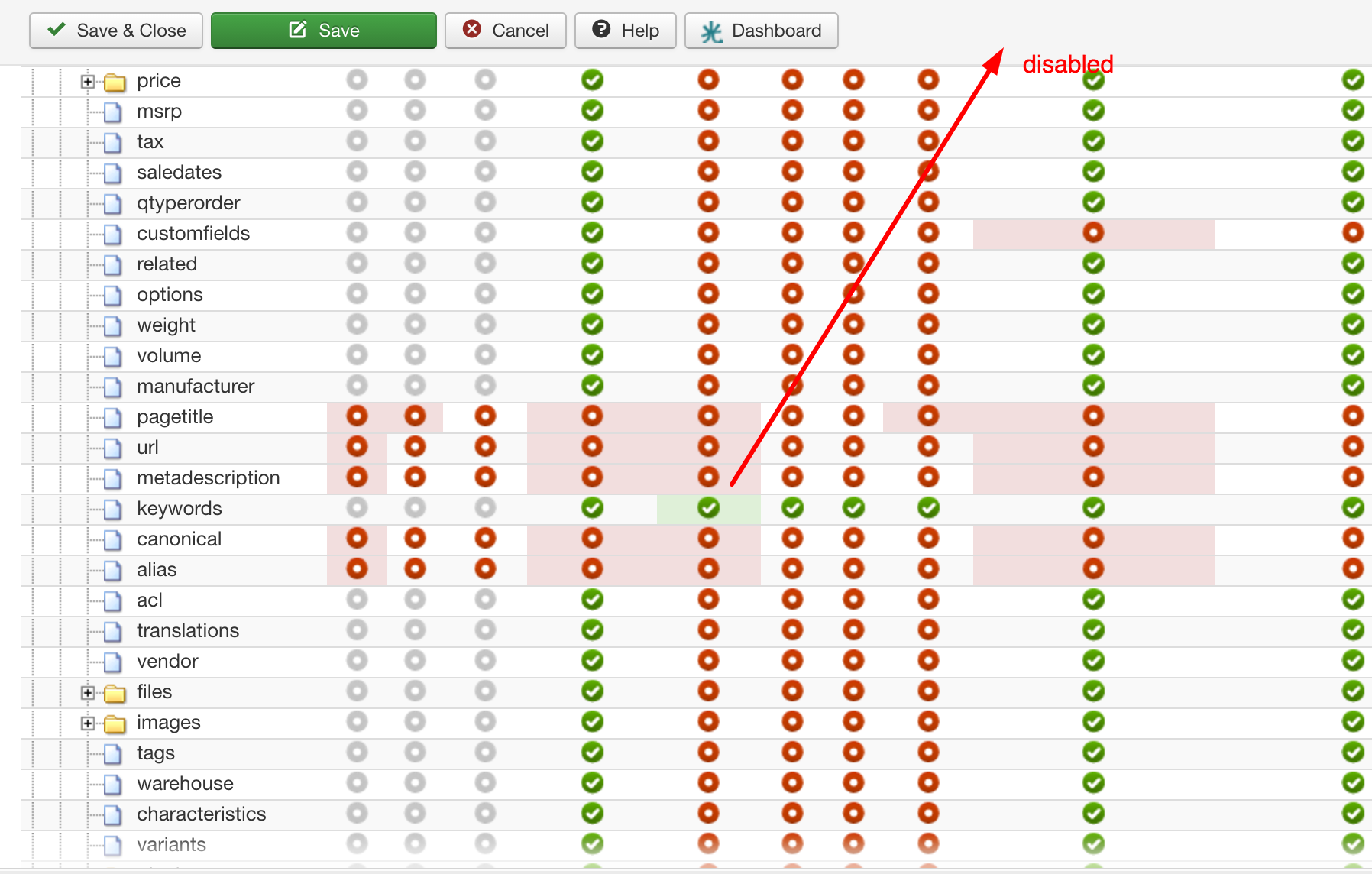 We cannot list the different fields in the HikaMarket ACL configuration (and the list is already big enough).