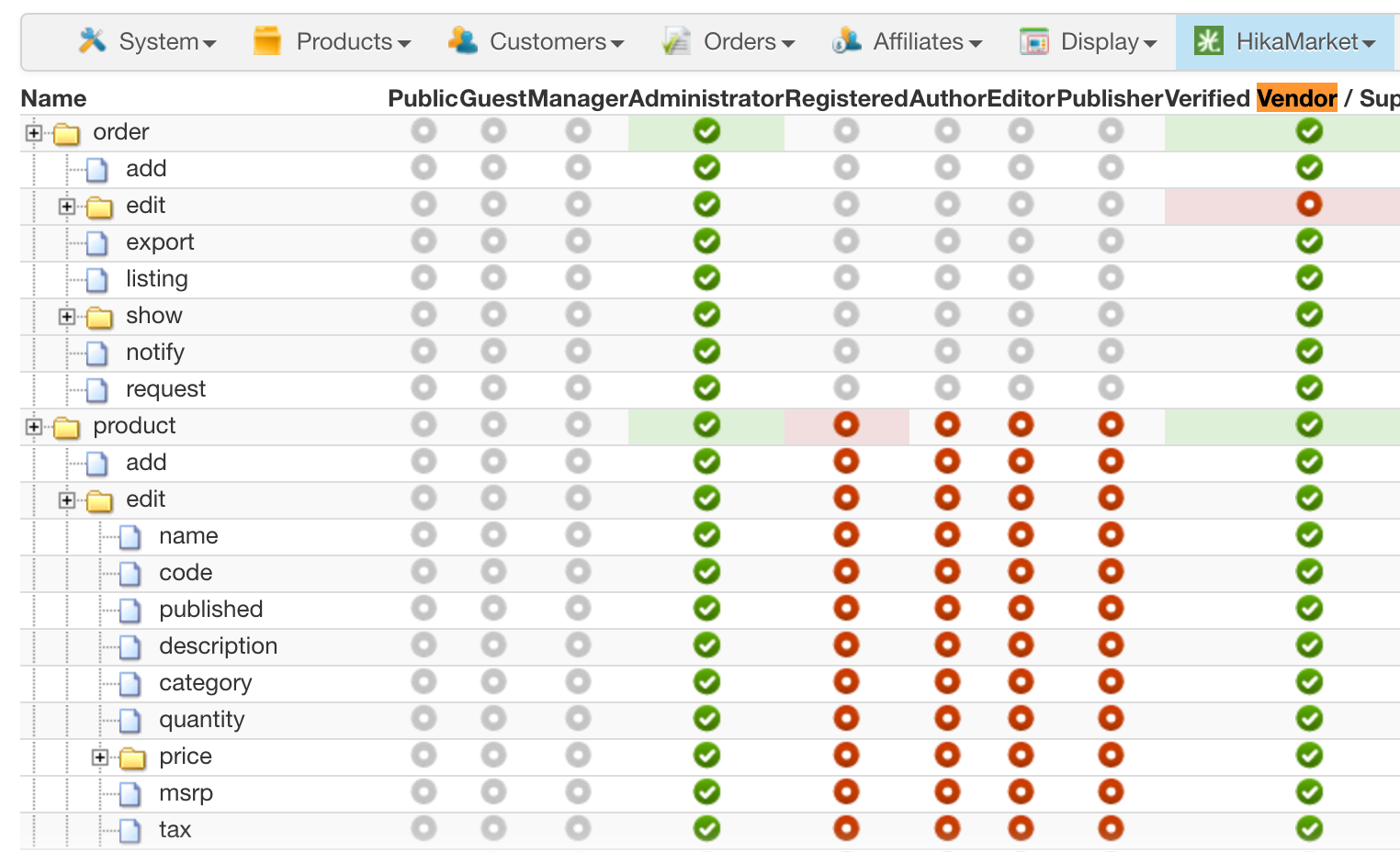 The ACL is provided by HikaShop business and is related to the Joomla account user group.