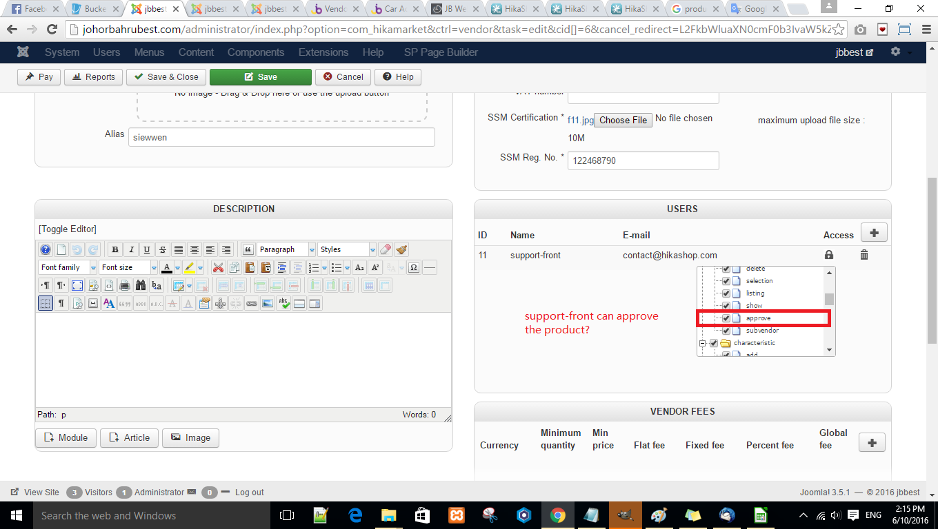 1. Why vendor user can approve the product by herself at front end?