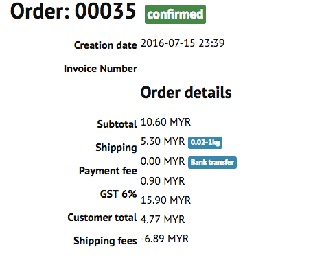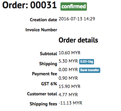 Payment fee 0.00 Bank transfer <- correct