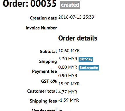 Vendor total -11.13 MYR <-- 10% of total order should be 1.59 or -1.59