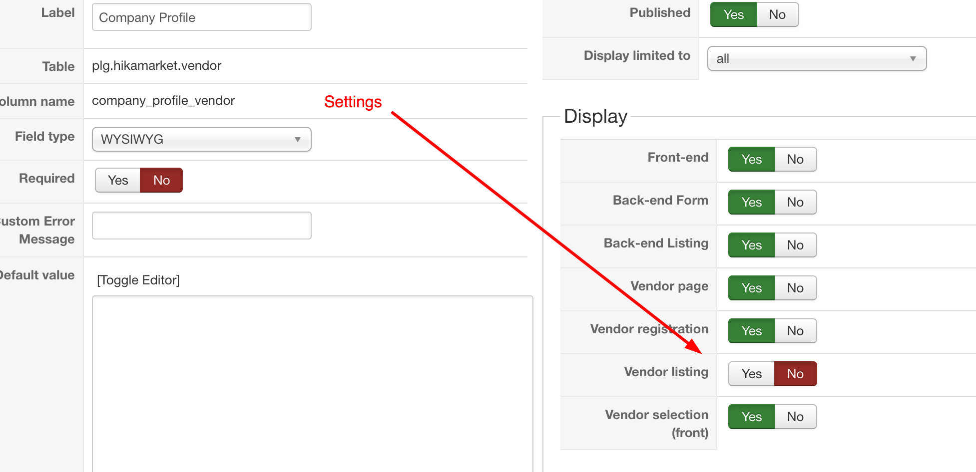 Which means that the setting is for the backend vendor listing.