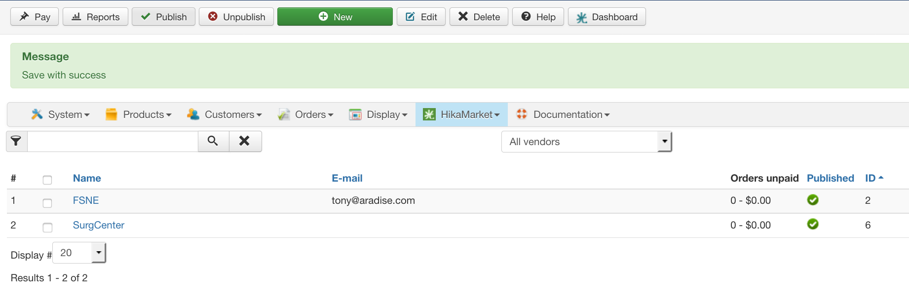 The problem is, I don't understand the extension very well. It's two very complex components and I don't understand how it all works, so I actually hired a company to set up HikaMarket. Due to language barriers, they did bot get it 100% working properly.