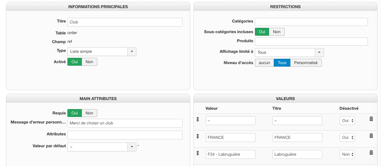 Nous conseillons de mettre des valeur en mode "chiffre" ou "namekey" (texte alphanumérique a-z 0-9 en minuscules uniquement)