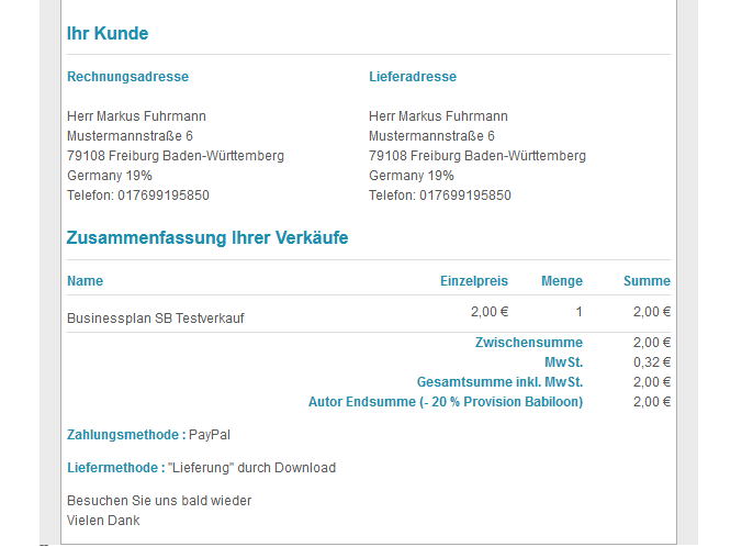 In the Autor bill in the row "Autor Endsumme (-20% Provision für Babiloon) should be total 1,60 Euro (2 Euro-20%) and not 2.00 Euro! How can I change this, or how can I delete this whole row included the total Euro - here 2.00 Euro?