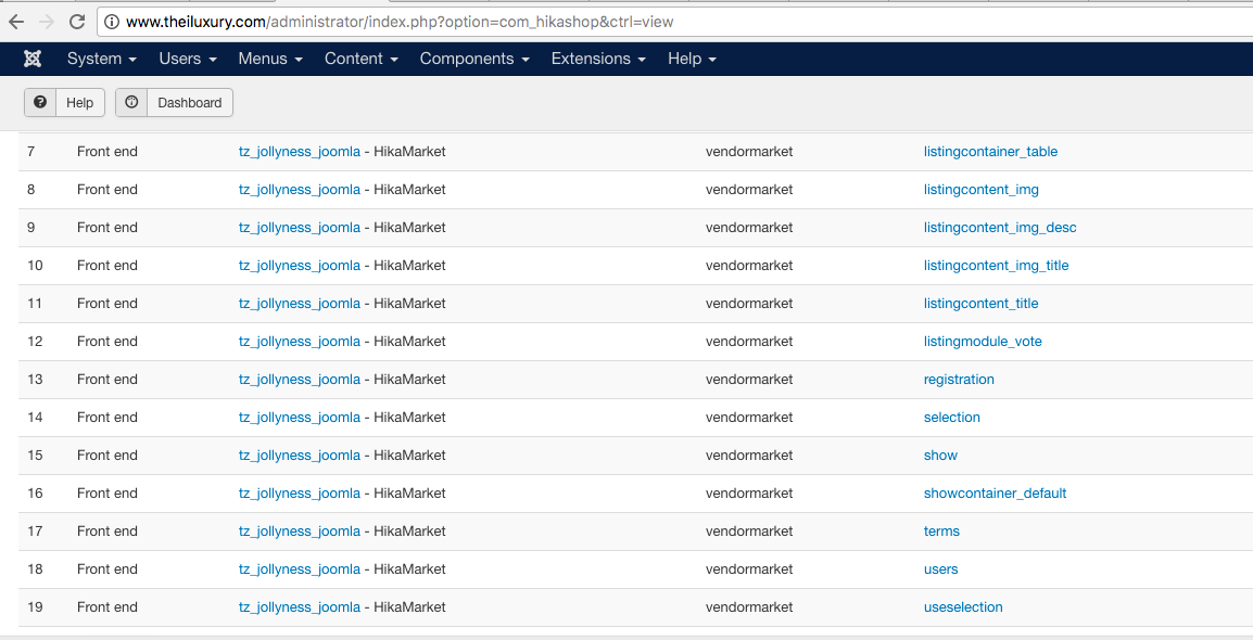 Your screenshot about the views are just the HikaShop system to perform view overrides.