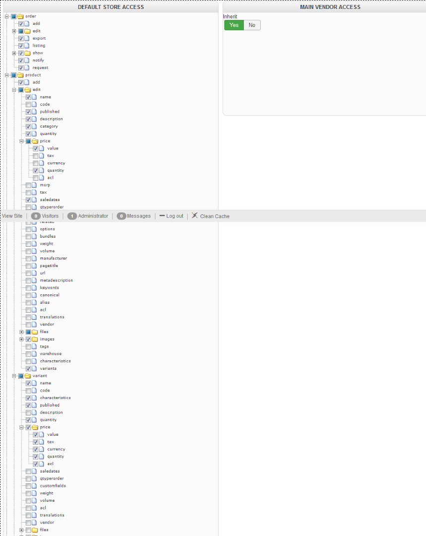 So you will find some "rights" to your vendors regarding the "characteristics" and "variants".