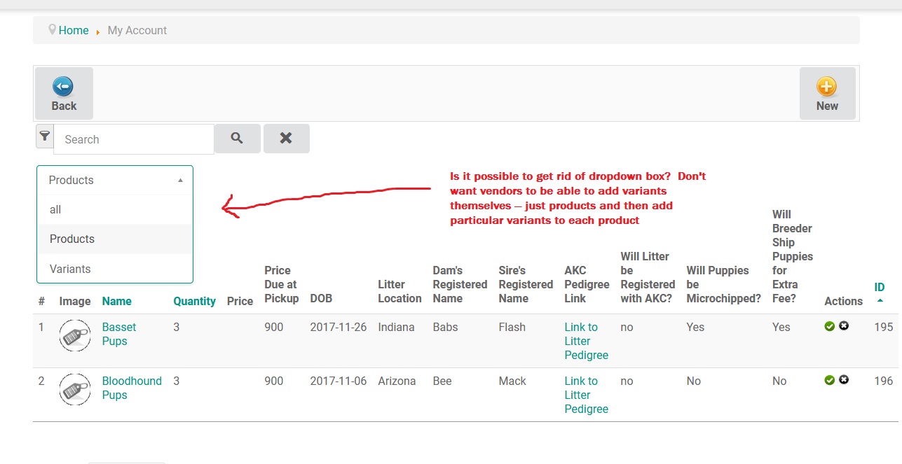 But the display is not related either to the fact that the vendor can or cannot create variants. It is just a filter to display products or variants. Changing the filter do not change the vendor ability to create or not variants.