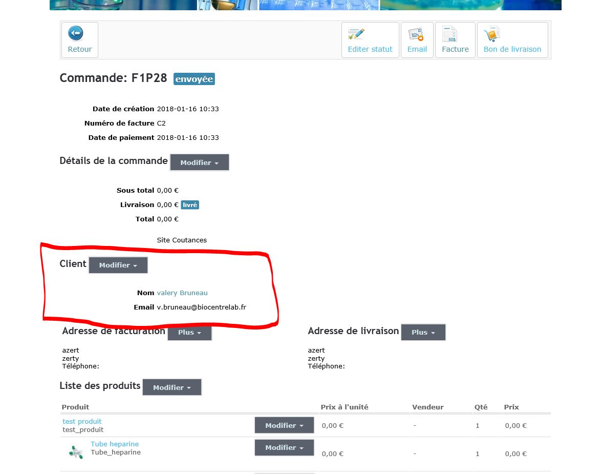 Comment faire également apparaître ces informations sur le bon de livraison et la facture? (avec le nom et adresse mail du client qui n'y figure pas non plus).