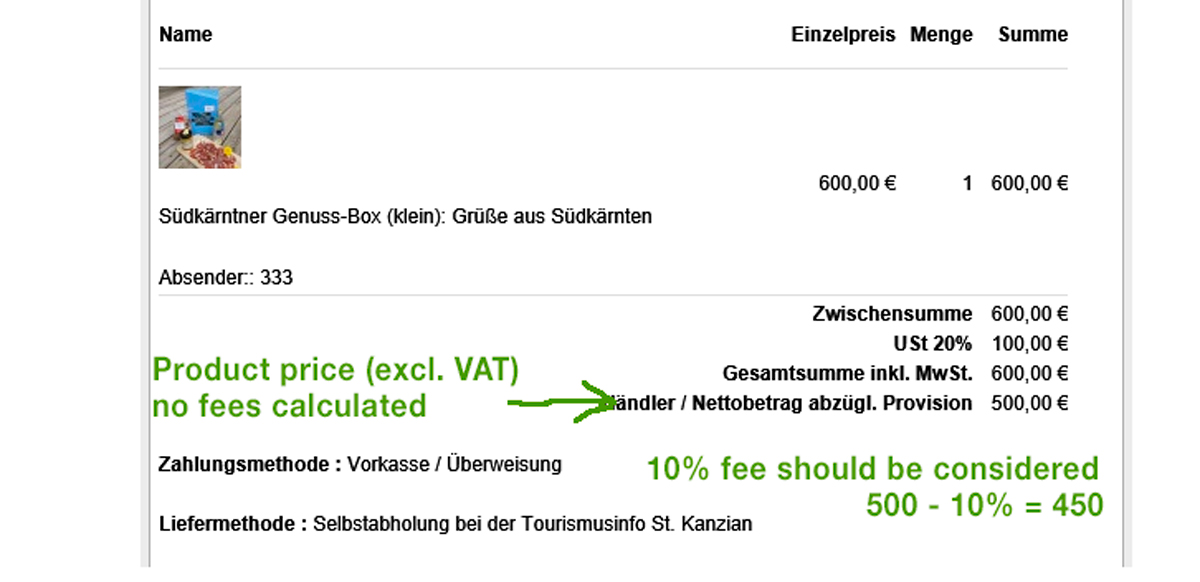 (I added fees to the product and variants; I tried seperated prices for variants... but the result is always the same: calculation is without any fees)