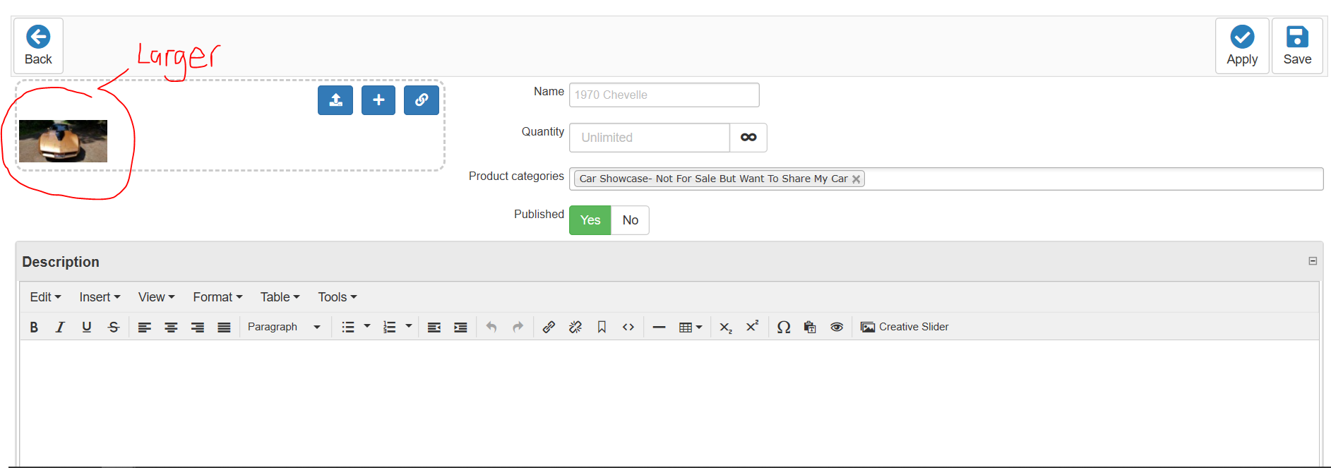 I notice that the thumbnails are not the same edit as hikashop. I am wondering how I can enlarge the thumbnails in the hikamarket multi vendor edit/new section.