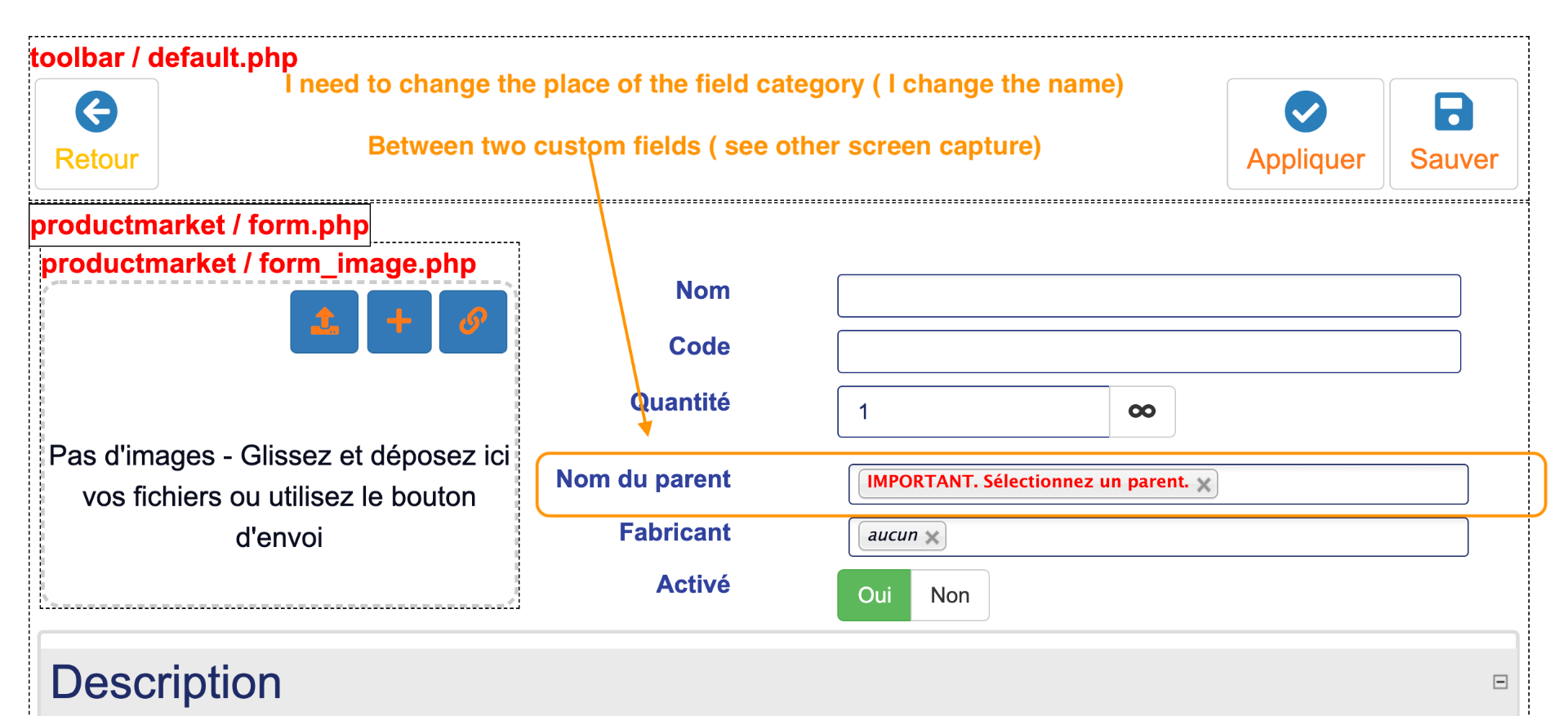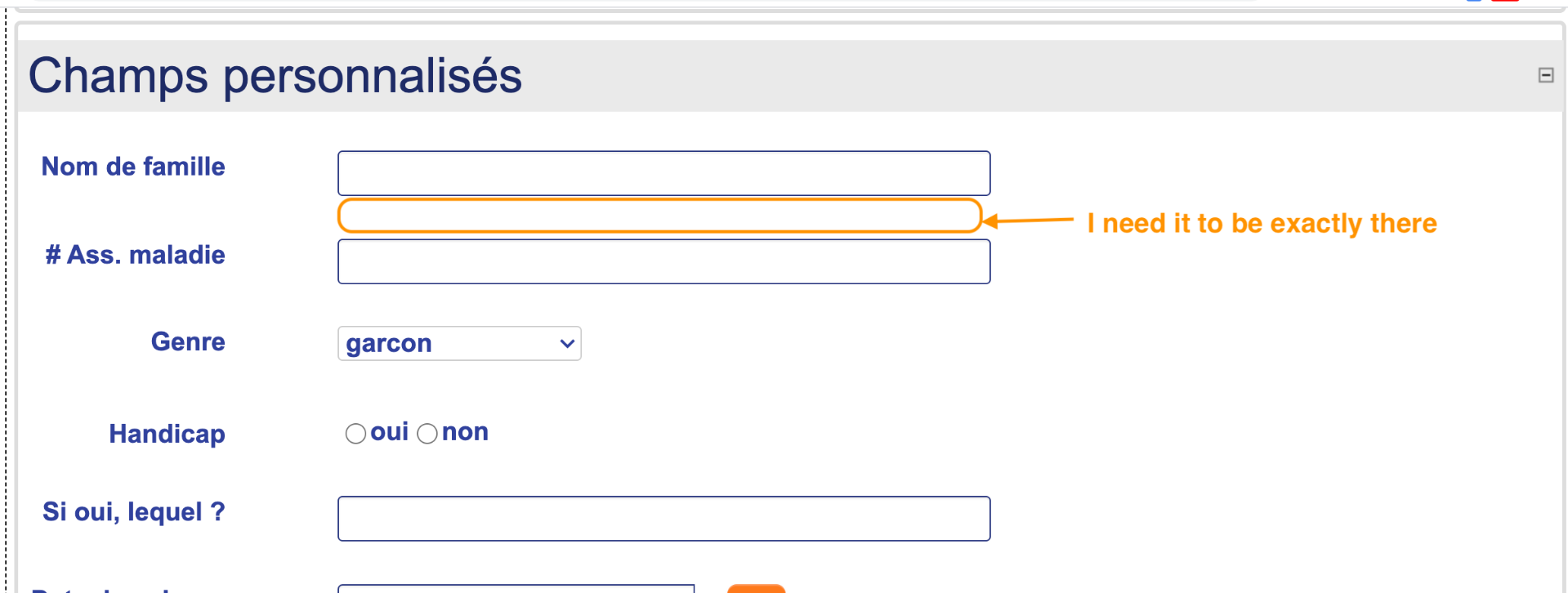 Thanks to that, your field will be mandatory and you can place it in the "champs personnalisés" section too.