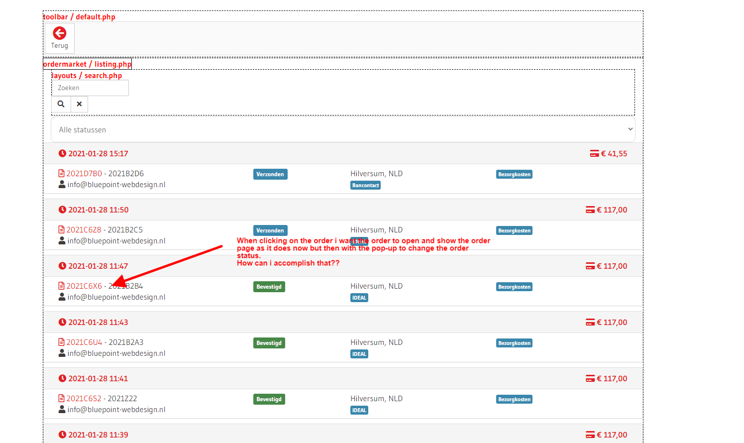 If you want to be able to use the "order status" popup within the order listing, you need to add the required javascript in the listing.