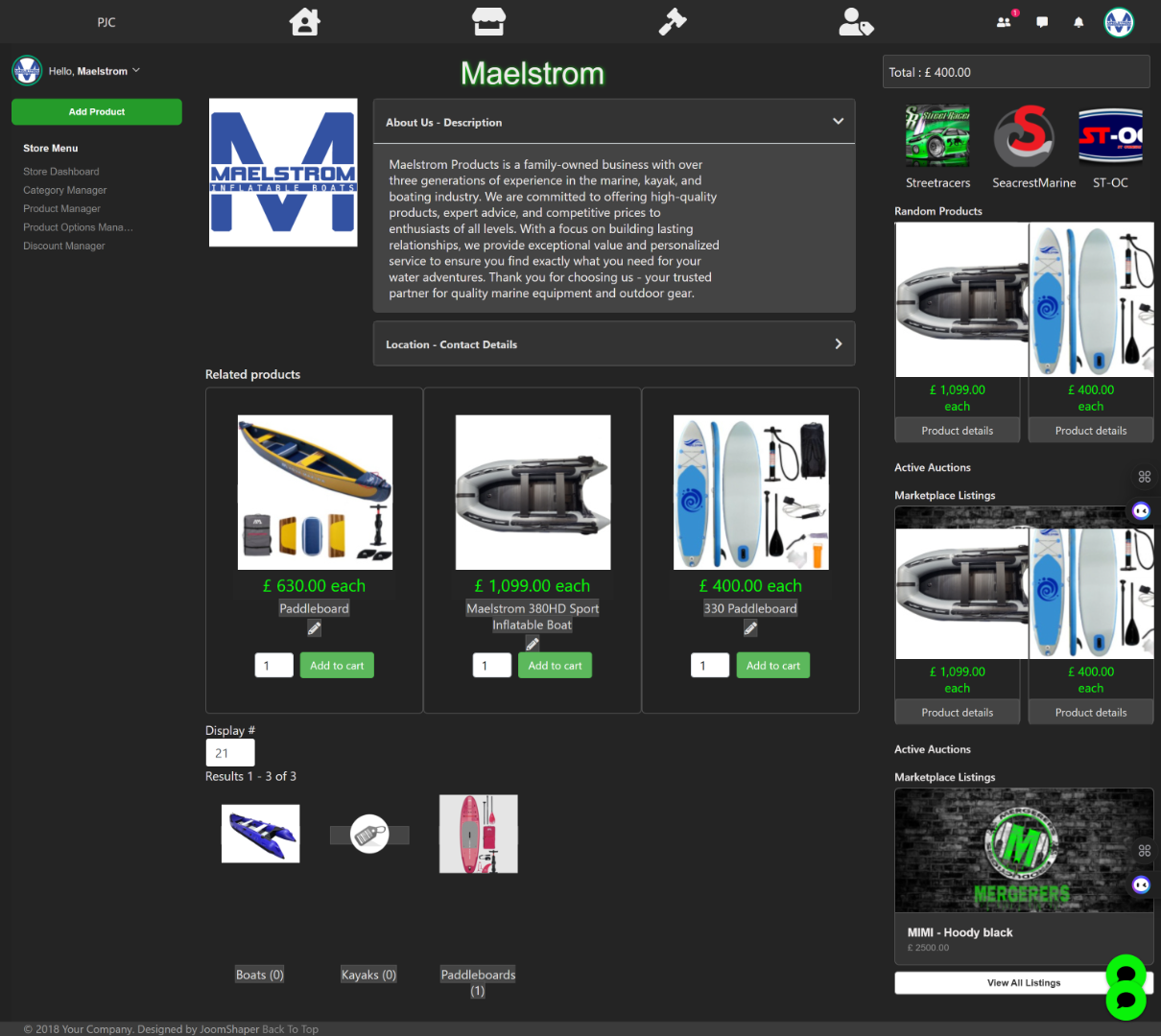 Url shown for vendor page is > pjcfamily.co.uk/easy/store-dashboard/vendor/show/2-maelstrom