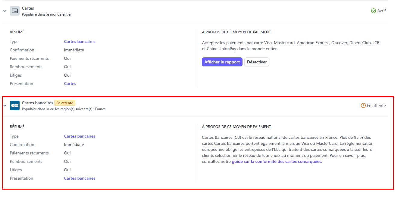 Après, même si vous êtes en mode "paiement intent", il peut y avoir des choses à activer du côté de Stripe (et donc pas dans le plugin, vraiment dans votre compte Stripe).