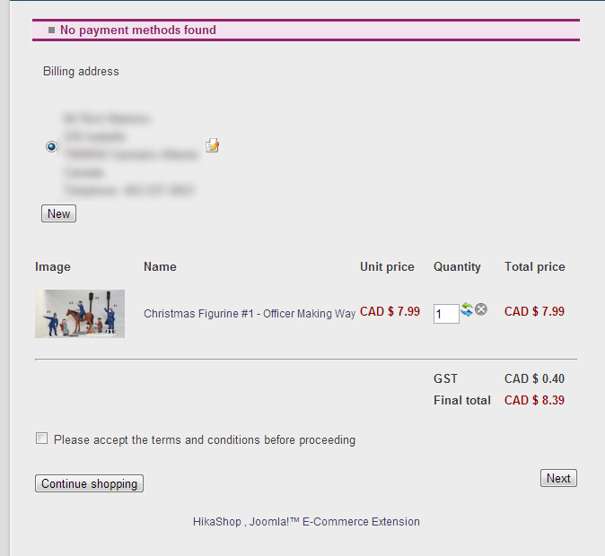 Shows the following error message "No payment methods found"