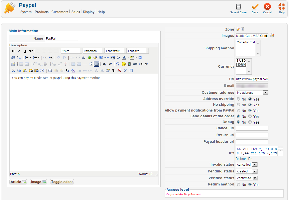 8/ When you select a currency or a shipping method in the options of the payment method, the payment method won't display unless that currency or shipping method is selected during the checkout. In most cases, these parameters shouldn't be selected so make sure they are unselected. To unselect them, you need to press the ctrl key and click on the selected currencies or shipping methods.