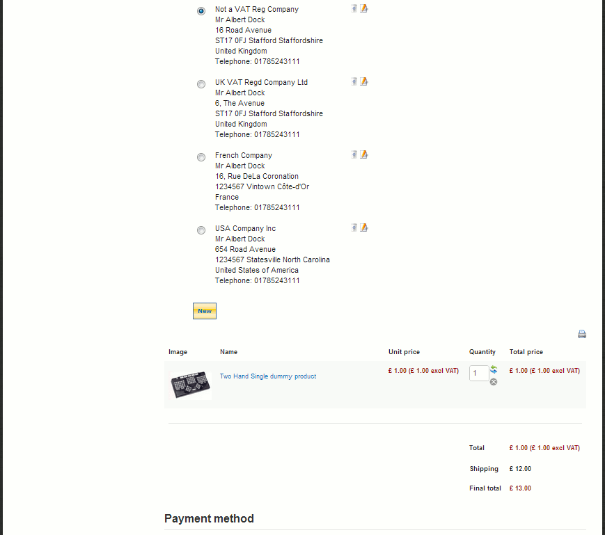 Thank you again for your help and for your reply. I'm fairly sure I now have the tax rules set up OK, and VAT is being added or not added depending on the address. But the VAT check is still not happening. I have attached screenshots of the custom field setup, the address input popup, and the total screen. As you can see, If I enter a rubbish VAT number like "123", no check is done and VAT is taken off the total. If I remove the 123 and leave the field blank, then VAT is added as it should be.