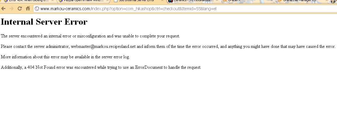 Ok, so it's not a 404 error but an internal server error. It's quite different