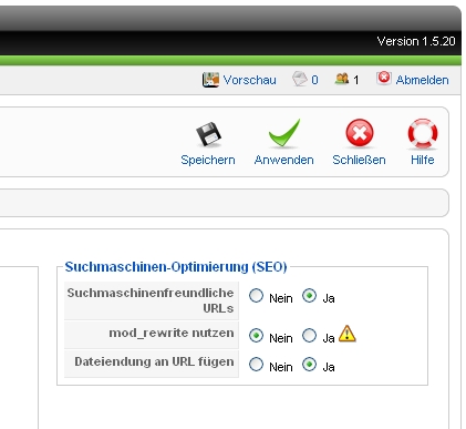 $this->_mode /* string */ = 1 (=== JROUTER_MODE_SEF)