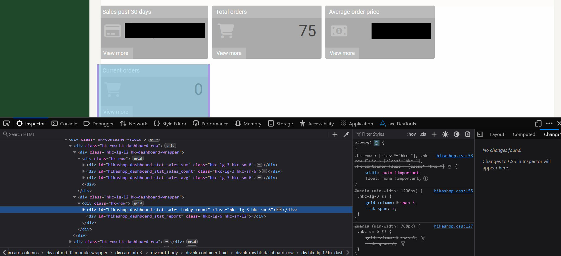 We've started updating some sites to 6.2.0 and noticed a layout change on sites using the HikaShop dashboard. In 6.1.1, our order stat tiles displayed as four columns in a single row. After updating to 6.2.0, the last tile now wraps onto a second row. This appears to be caused by the introduction of the hk-dashboard-row / hk-dashboard-wrapper structure and the way the dashboard grid is now split into separate rows. In 6.1.1 each tile was a direct child of the container, allowing all four tiles to display in one row. In 6.2.0, the tiles are grouped into separate hk-dashboard-wrapper divs with hkc-lg-12 classes, forcing them to stack vertically.