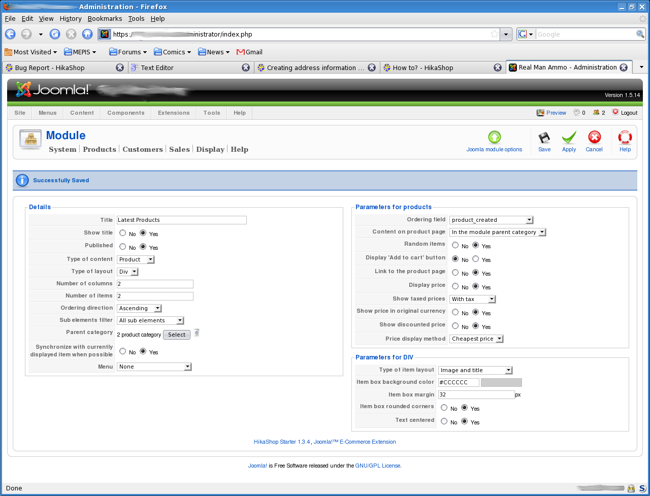 And here's a screenshot of the frontpage, where you can clearly see that the 'Latest Products' module is missing 'Details' buttons.